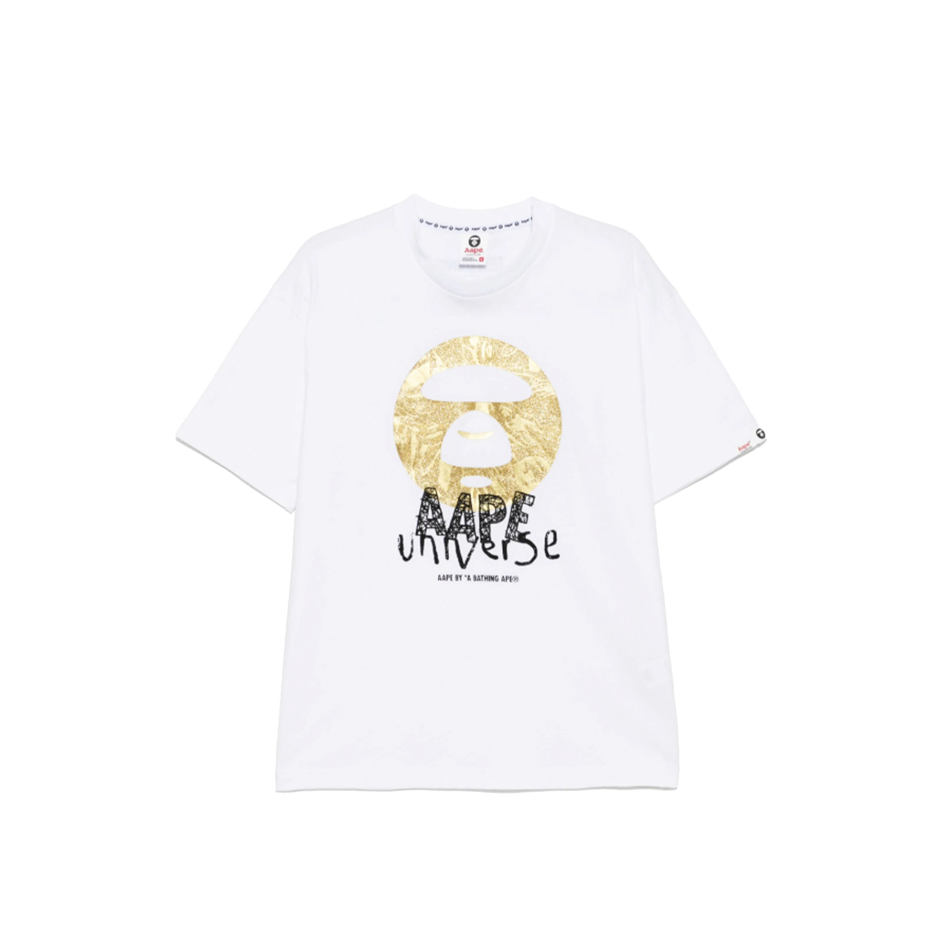 AAPE by A Bathing Ape Universe Gold Moonface Logo Print T-shirt White