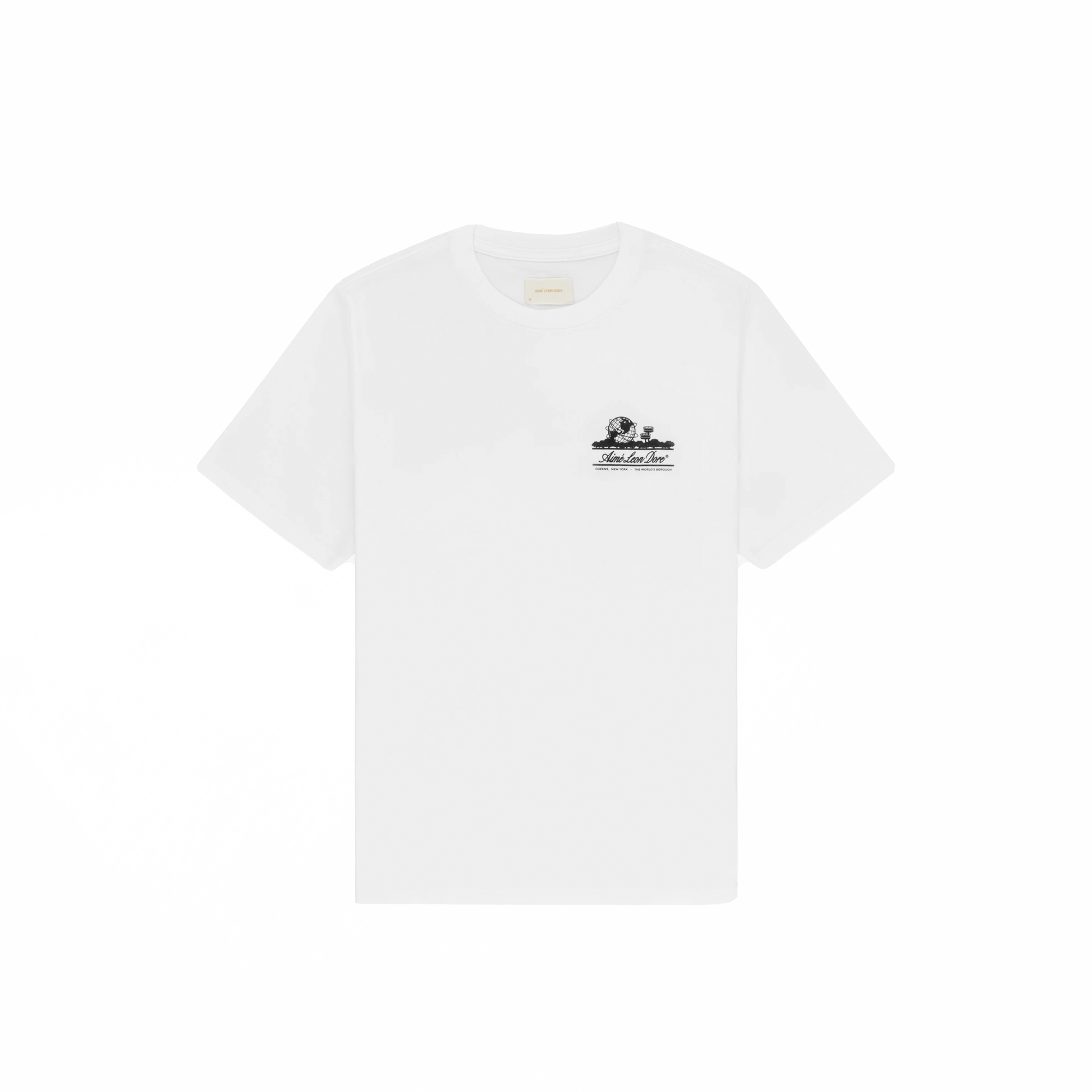 Elevate your style with the Aimé Leon Dore SS Seasonal Unisphere Tee in Bright White. This classic white tee features the iconic Unisphere logo, adding a touch of urban flair to any outfit. Made with soft, high-quality fabric, it's both comfortable and stylish. Perfect for everyday wear or dressing up for a night out.